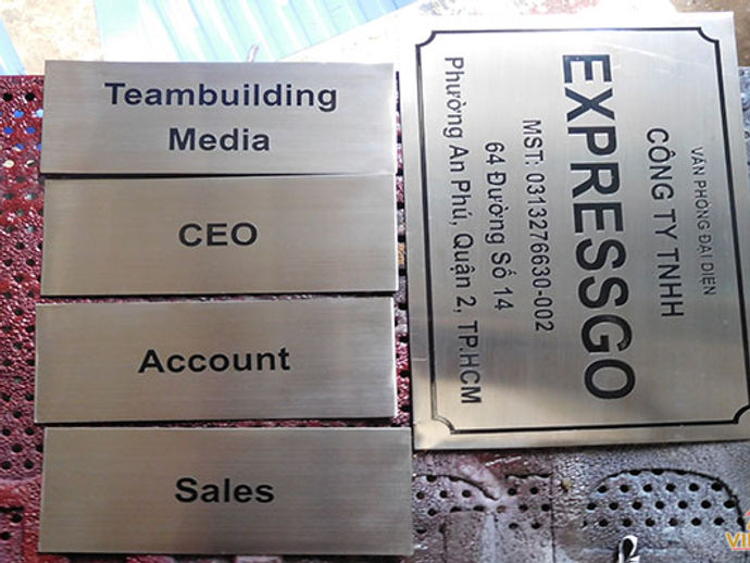 Gia công bảng inox ăn mòn tên công ty Expressgo