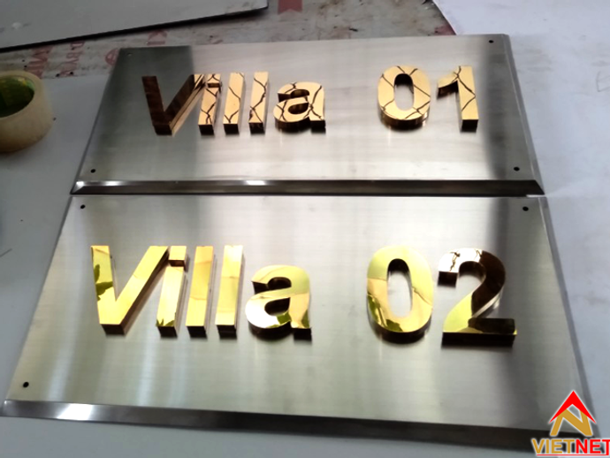 Gia công bảng hiệu chữ inox vàng Villa