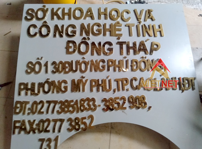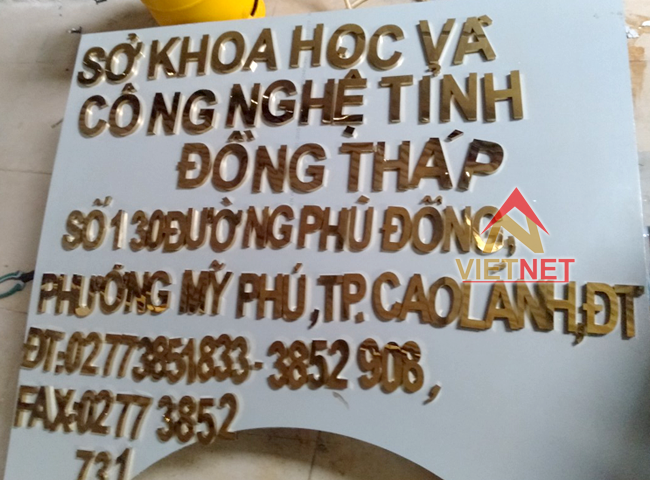 Bảng hiệu chữ inox vàng Sở Khoa Học tỉnh Đồng Tháp